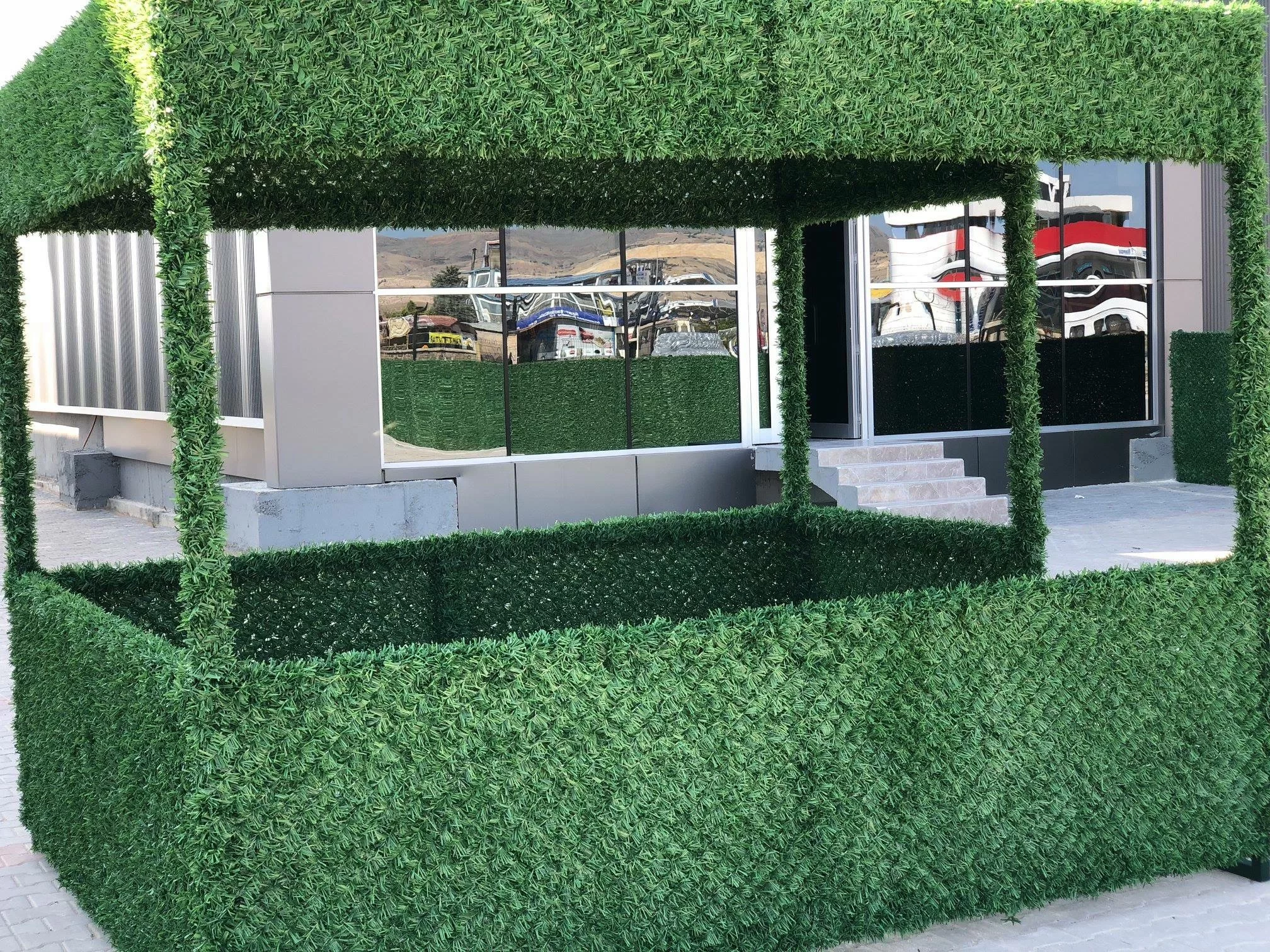 En entornos comerciales como restaurantes, cafeterías, hoTeléfonoes y lugares para eventos, las cercas de césped se utilizan para mejorar la estética y crear espacios al aire libre acogedores. Se pueden utilizar para separar zonas de asientos, decorar puertas de entrada o formar particiones temporales para exposiciones y eventos. La apariencia realista del césped proporciona un atractivo visual refrescante al mismo tiempo que mantiene la funcionalidad.